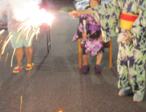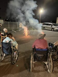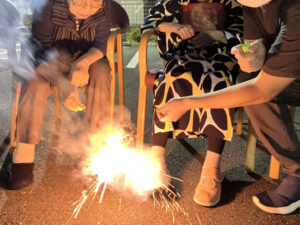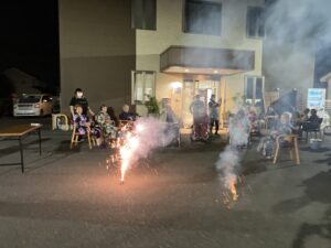 噴出し花火から始まり、手持ち花火で皆さんと大いに盛り上がりました。