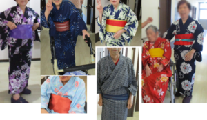利用者様に夏気分を味わっていただきたく、浴衣・甚平を用意(職員のをお貸ししました)