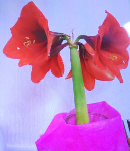 M様の奥様が電車とバスを乗り継いで大事に持ってきて下さったアマリリス。
