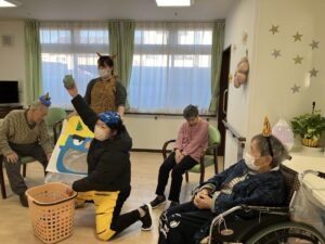 赤鬼青鬼とチームに分かれて玉入れゲーム🎡
