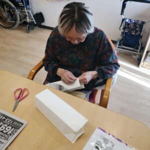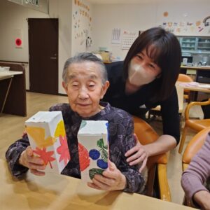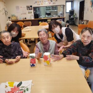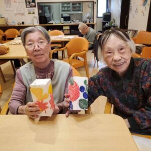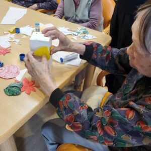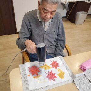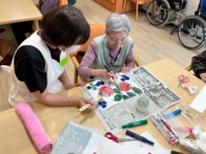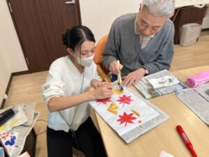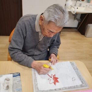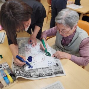 入居者様にペンと絵具を使って色を
