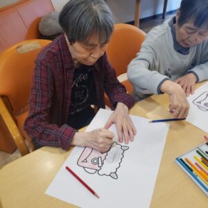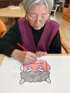 節分に向けて、鬼の塗り絵を行いました😊
