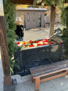 「久々にお寺の方に行きましょうか!」とお誘いしたらたくさんのお花ときれいな紅葉が目に入ったので