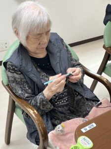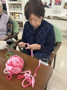 最近ホームでは編み物が流行しているんです。