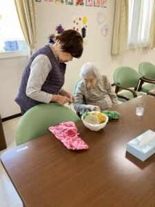最近ご入居されたご利用者様にも教えている様子が見受けられ