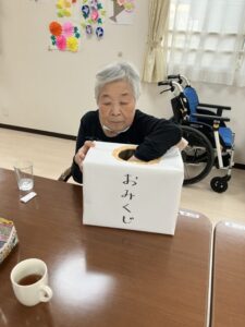 始めにスタッフ手作りの『おみくじ』を引き