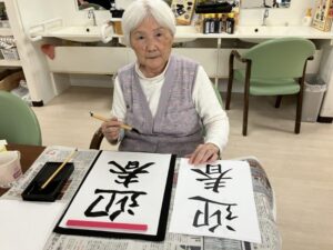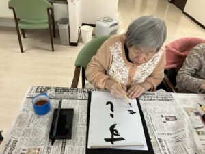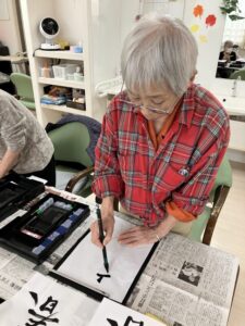 皆さん、真剣に書初めをされました。