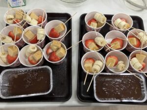 フルーツを串に刺すのとチョコレートを細かくする作業を手伝って頂きました!