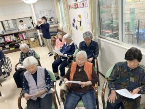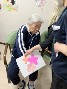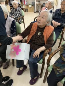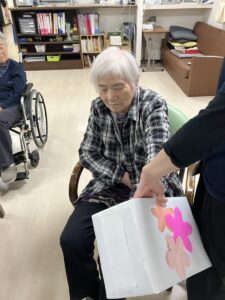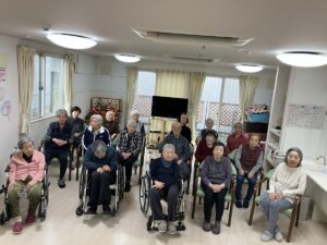3月3日、1階2階のご利用者様合同でひなまつりのレクを行いました。1階のご利用者様の様子です。