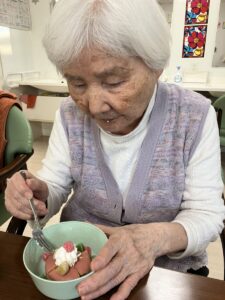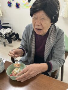 1階は3月3日にお誕生日のご利用者様がいらっしゃるので、3日の午後はお誕生日会を行い、次の日にひなまつりのおやつをご用意しました。