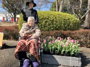 春も近づいてきて色々なお花が咲いているのを見ると「こんな色のお花見た事ない。あんなところにも咲いてる。すごいねぇ」とお話され