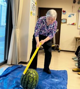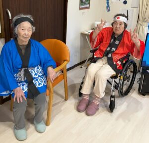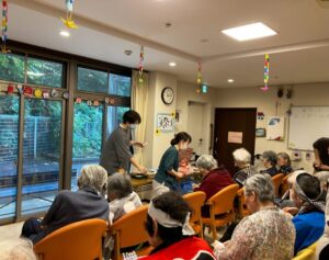 入居様のご家族や近隣の方々と一緒に夏祭りを楽しむ。
