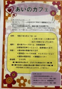 今回は9月27日に開催される「あいのカフェ」のお知らせです!