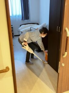 朝のお掃除、ご自分のお部屋をお掃除していただいております。