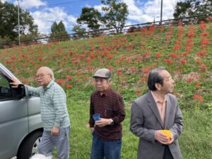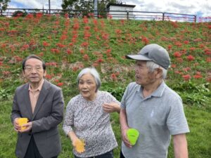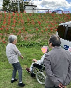 こんにちわ!愛の家グループホーム二本松油井です。少しずつ秋らしくなってきた今日この頃・・・秋晴れの空の下、近くの河川敷まで「秋の花」を見にドライブに行ってまいりました。