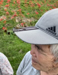 🧢帽子に着地して羽を休めるトンボ。癒しの一枚です。