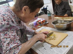 調理のお手伝いをして下さいます。ゴボウの千切りもお手の物!🔪