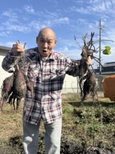 土の中からゴロゴロと大きなさつまいもが顔を出すたびに、