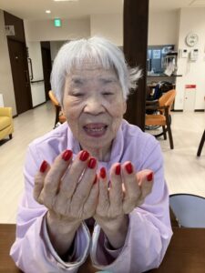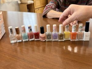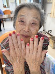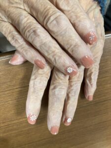 先日、さくらユニットの利用者様にネイルを施させていただきました。