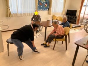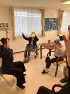 普段あまり体を動かしたがらない利用者様でも、皆さんと一緒に行う時間になると、自然と体が前向きに(*^^*)