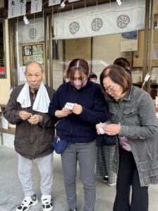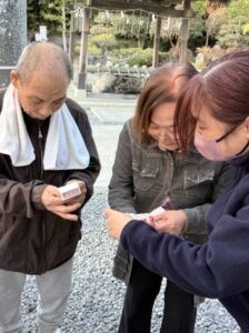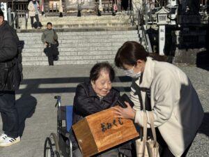 本殿へ向かい、それぞれが今年1年の健康や幸せを願って、静かに手を合わせて参拝。