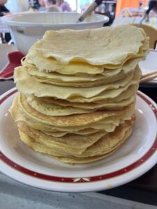 スタッフのIさんが「クレープ生地は私におまかせください」とたくさん焼いてくれました