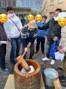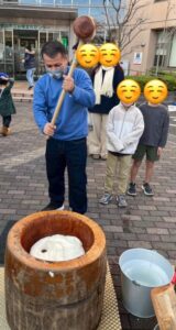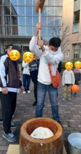 初めての、日本の餅つき!