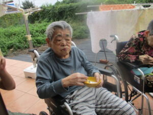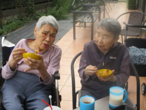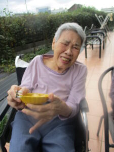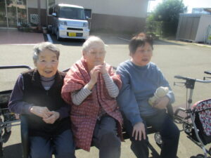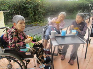 午後は裏のベランダに出てみんなでおやつを食べました(^_-)-☆
