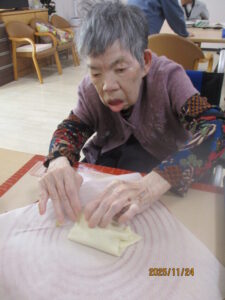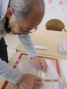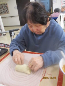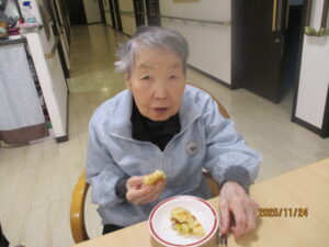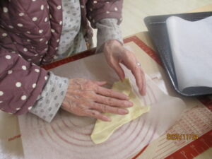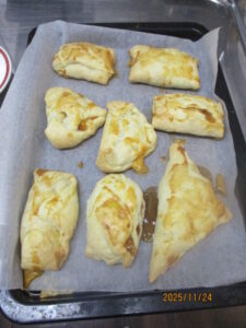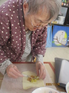 今度はおやつにリンゴとサツマイモを使ったアップルパイを作りました。
