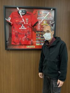浦和レッツのユニフォームの前で記念写真📸