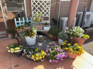 さっきまで曇り空だったのが急に青空になり玄関のお花たちも映え映え💓