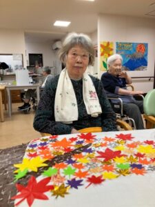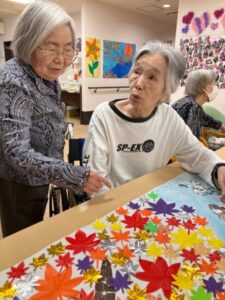 (フロアには皆さんが作った貼り絵が飾られていてとても賑やかです)