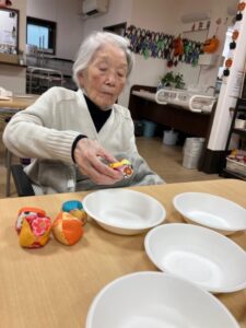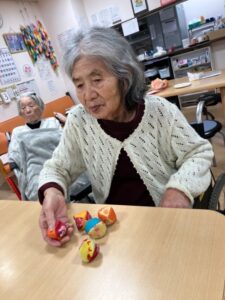 こちらではお手玉を使ったゲームを楽しんでらっしゃいます。