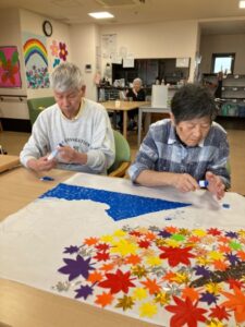 こちらでは色とりどりの貼り絵を作っています。