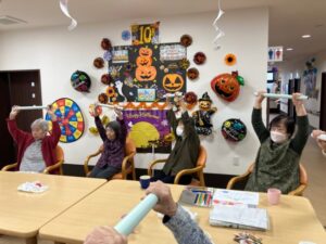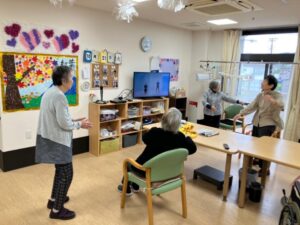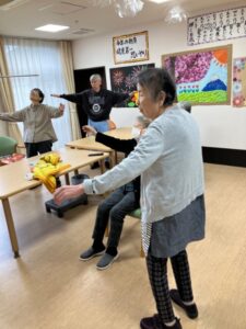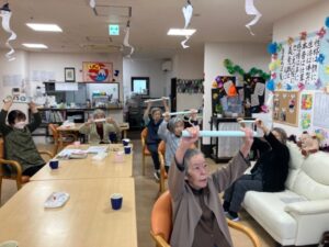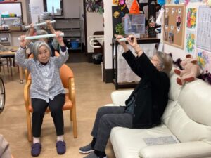 雨が降ると散歩に出られませんので、みなさん施設内で身体を動かしています🤗