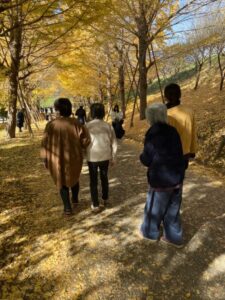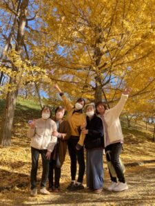 イチョウの木が色鮮やかな黄色で、とてもきれい。