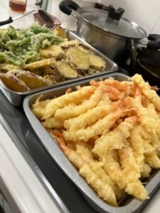 この日は天丼です。揚げたてだから美味しいですよね。
