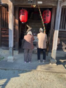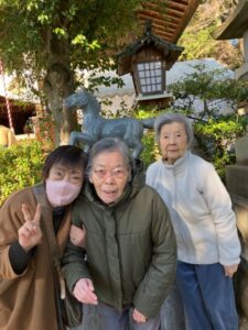 こちらはホームの近くにある延命地蔵尊に長寿を願って😁
