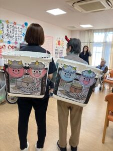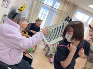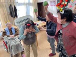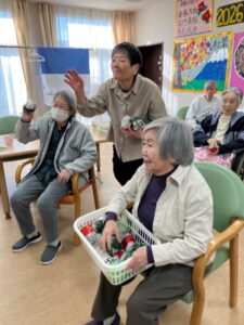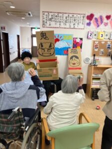 1階、2階それぞれで豆まきを実施しました。