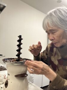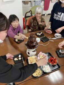 チョコレートフォンデュする姿も…