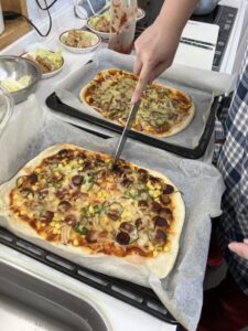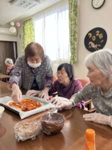 ピザソースを塗ってる姿も…