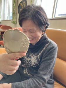 鏡をみて照れる姿も…