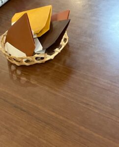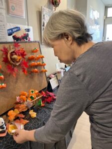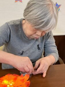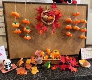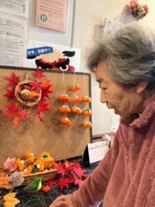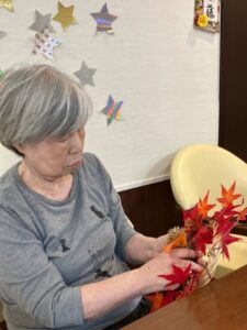 紅葉リースを作って頂きました。「こうかなぁ….」迷います….
