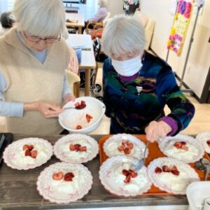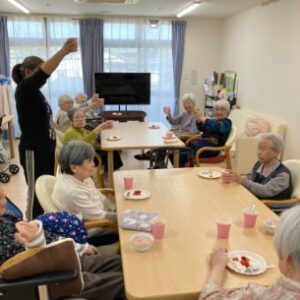 お祝いのスイーツは入居者さんで