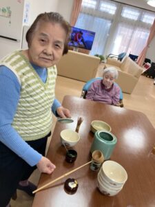 ご利用者様による茶道教室の模様を