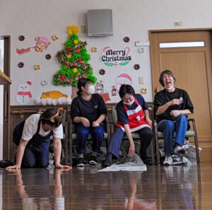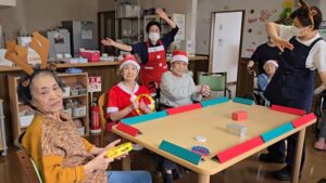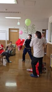 ホーム長参加の「風船お着替えゲーム」では20代を相手に本気を出して勝ってしまう。。我を忘れたと。