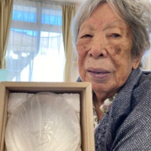 百寿のお祝い、ちゃんちゃんこを着ていただきました。
