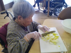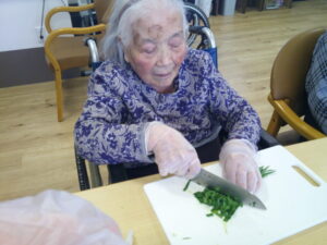 また、100歳を迎えられている利用者様が包丁を手に取り、丁寧に野菜を切られる姿も見られました☺️