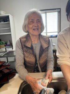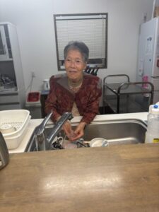 泡に包まれたお皿がきれいになると、ほっとした表情を見せてくださる姿もあります。