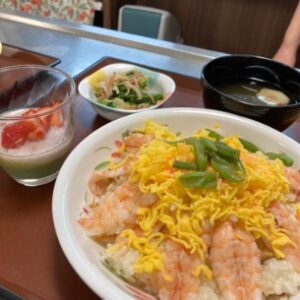 また、ちらし寿司と一緒に、お吸い物や副菜、デザートもご用意し、春を感じる献立となりました。